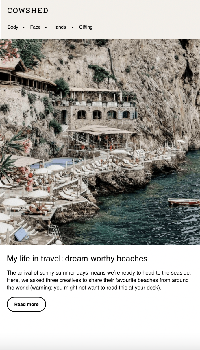 Cowshed started out with a mission to inject our busy lives with some “country calm” by way of Somerset’s Babington House — over 20 years later, its natural products and treatment-led therapies are a mainstay of spas across the world. I wrote a series of emails, web and packaging copy for the brand (and enjoyed some second-hand relaxation).